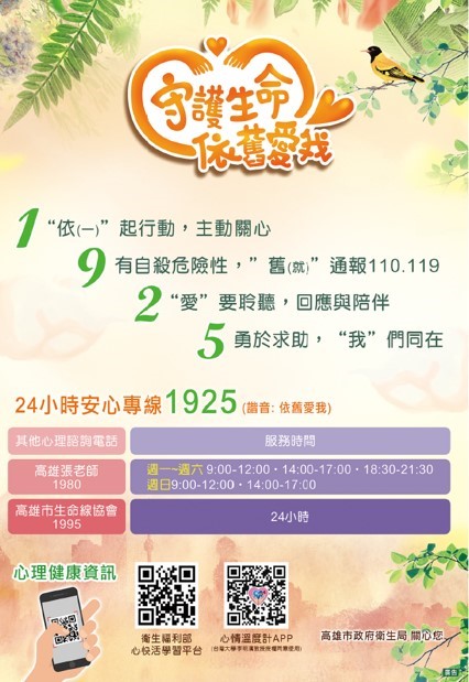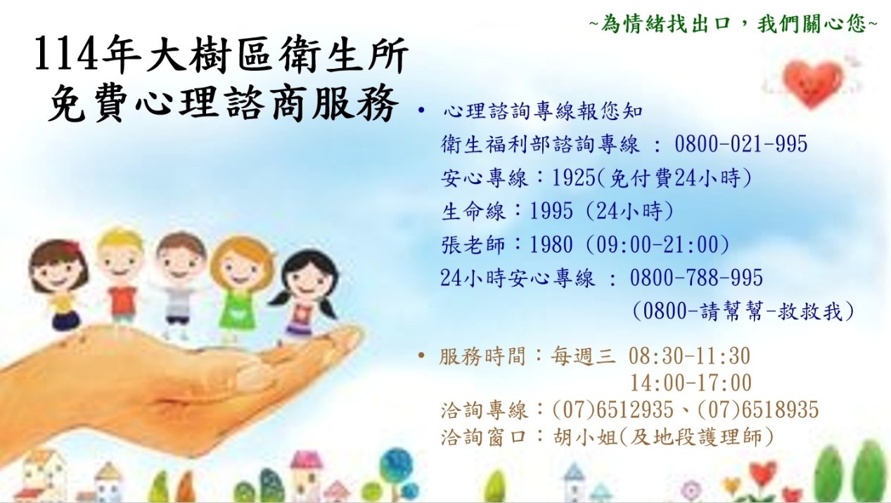114年大樹區衛生所心理諮商服務 守護生命,依舊愛我-1925安心專線